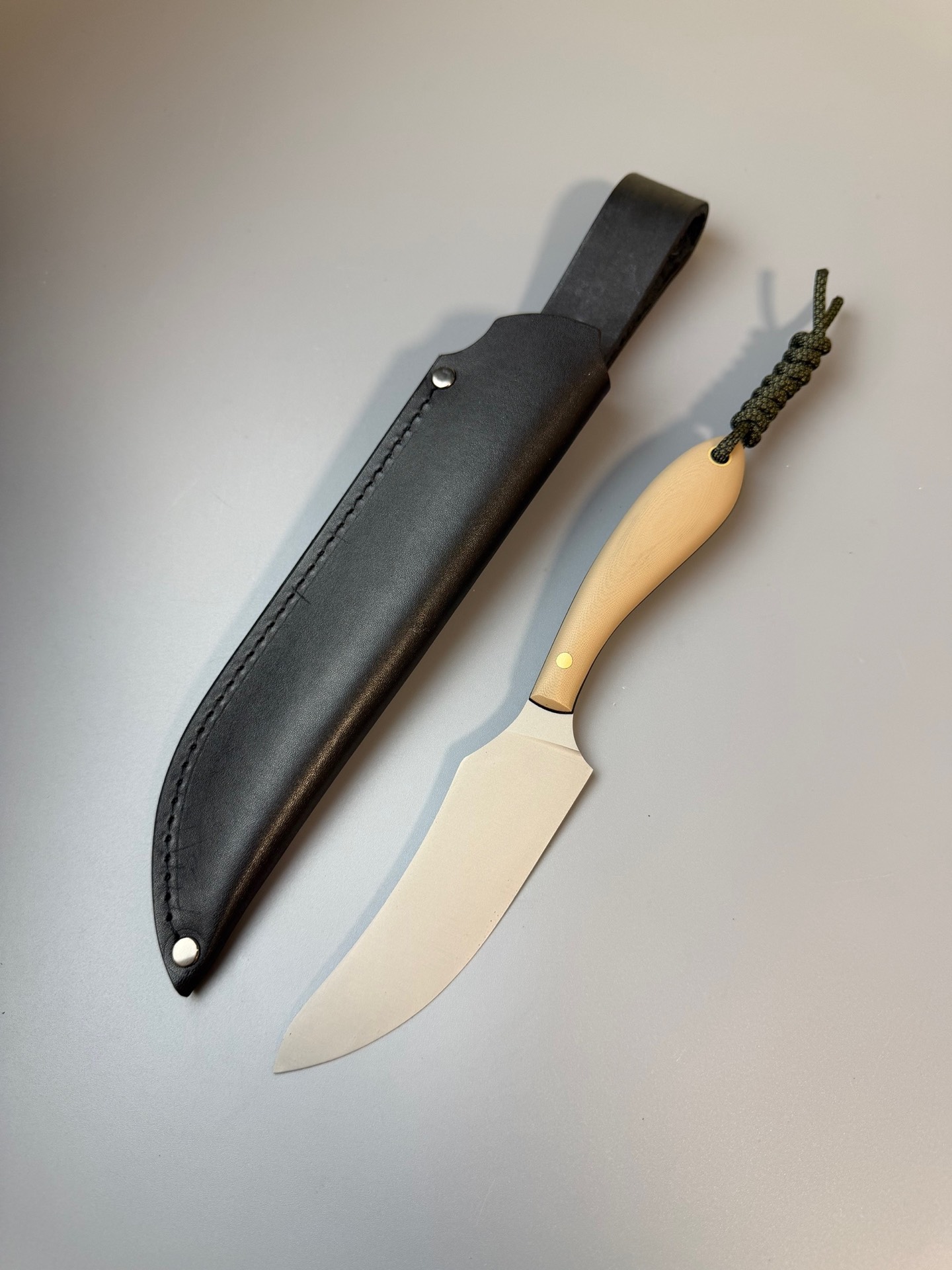 - Лезвие: острое, с чуть скошенным профилем, отлично подходит для нарезки разнообразных продуктов.