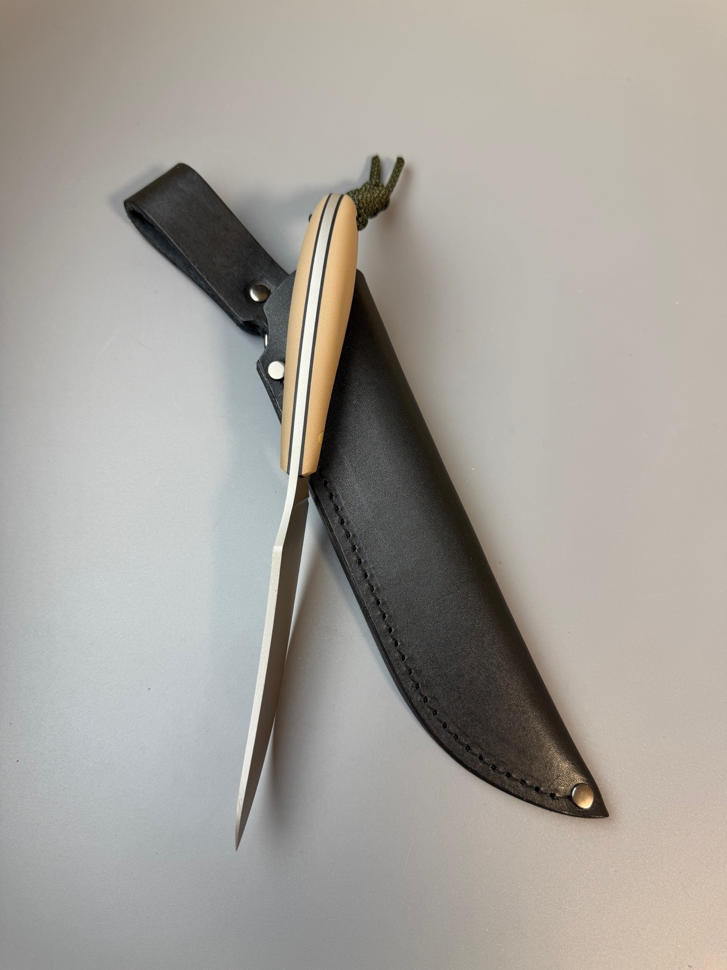 - Цельнометаллический корпус: рукоять и лезвие объединены в один целый кусок металла — это повышает надежность и устойчивость к механическим повреждениям.